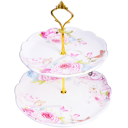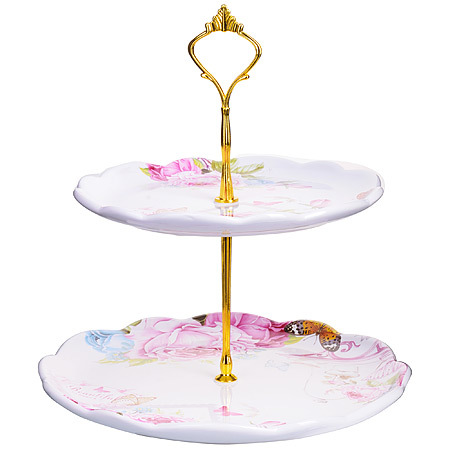 Красочная конфетница LORAINE, выполненная из высококачественной керамики, сочетает в себе классический дизайн с максимальной функциональностью. Конфетница состоит из 2-х ярусов разного размера и предназначена для красивой сервировки конфет, фруктов и десертов. Круглые ярусы конфетницы имеют волнистые края. Стойка-держатель конфетницы выполнена из металла с золотым напылением. Высота конфетницы в собранном виде составляет около 28 см. Элегантная конфетница LORAINE украсит сервировку Вашего стола и подчеркнет прекрасный вкус хозяйки, а также станет отличным подарком. Изделие упаковано в индивидуальную коробку. Подходит для использования в холодильнике, посудомоечной машине.