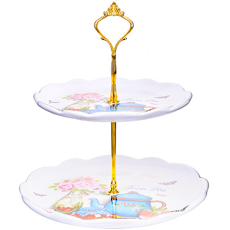 Красочная конфетница LORAINE, выполненная из высококачественной керамики, сочетает в себе классический дизайн с максимальной функциональностью. Конфетница состоит из 2-х ярусов разного размера и предназначена для красивой сервировки конфет, фруктов и десертов. Круглые ярусы конфетницы имеют волнистые края. Стойка-держатель конфетницы выполнена из металла с золотым напылением. Высота конфетницы в собранном виде составляет около 28 см. Элегантная конфетница LORAINE украсит сервировку Вашего стола и подчеркнет прекрасный вкус хозяйки, а также станет отличным подарком. Изделие упаковано в индивидуальную коробку. Подходит для использования в холодильнике, посудомоечной машине.