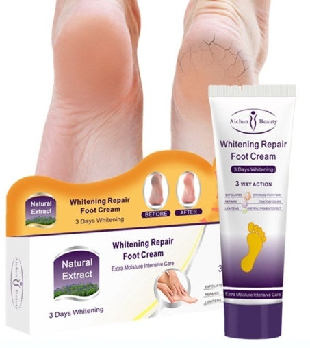 Увлажняющий крем для пяток с восстанавливающим и разглаживающим эффектом. Крем Aichun Beauty помогает от трещин на пятках, натоптышей, мозолей и грубой кожи. Обладает отбеливающим эффектом, разглаживает кожу, делая ее нежной и гладкой. Крем для пяток восстанавливает трещины, заживляют потрескавшуюся кожу стоп, благодаря своему составу, проникая глубоко в кожу и увлажняя ее. Крем можно использовать не только для пяток, но и всей кожи. Уникальность средства Aichun beauty заключается в том, что гарантированный результат виден уже после первого применения. Перед применением рекомендуется распарить кожу ног, затем при помощи пемзы/пилочки для стоп пройтись по проблемным участкам кожи и после нанести крем. Крем для пяток сделает вашу кожу мягкой, гладкой и увлажненной