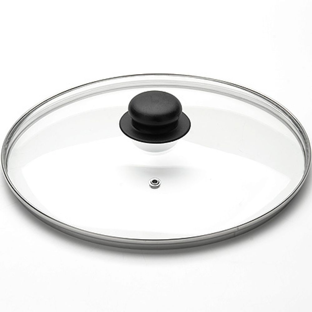 Крышка с пластиковой ручкой изготовлена из прочного закаленного стекла, устойчивого к влиянию высокой температуры. Стальной ободок по периметру крышки защищает ее от ударов и деформации, сохраняя целостность изделия. Ручка крышки имеет удобную форму, она выполнена из качественного термостойкого пластика, который не нагревается в процессе приготовления пищи и не обжигает руки. Изделие имеет небольшое круглое отверстие для вывода пара. Крышка предназначается для сотейников, кастрюль и сковород, диаметр которых равен диаметру крышки. Перед первым использованием вымойте крышку теплой водой с моющими средствами. Не ставьте посуду, накрытую крышкой с пластмассовой ручкой, в духовку или микроволновую печь. Подходит для мытья в посудомоечной машине.