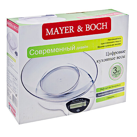 Кухонные весы MAYER&BOCH пригодятся на любой кухне и станут прекрасным дополнением к набору вашей мелкой бытовой техники. Используя их, вы сможете готовить блюда, точно следуя предложенной рецептуре, что немаловажно при приготовлении сложных блюд, соусов и выпечки. Весы электронные, оснащены цифровым LCD-дисплеем, функцией автоматического отключения и функцией тарокомпенсации. Выполненные в современном стиле, со съемной прозрачной чашей, такие оригинальные весы украсят любую кухню и принесут радость каждой хозяйке.
