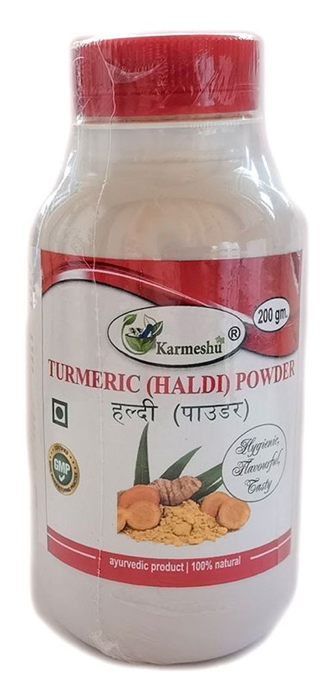 КУРКУМА МОЛОТАЯ (Turmeric powder) компании Karmeshu – качественный продукт, специя высокого качества, выращенная, обработанная и упакованная в Индии. Пользу куркумы трудно переоценить. Куркума, или турмерик (лат. Curcuma longa) – многолетнее травянистое растение семейства Имбирные (Zingiberaceae), корневища которого издревле используются как пряность, как пищевой краситель и как лечебное средство. Корневище выкапывают, очищают, погружают в кипяток и сразу же высушивают на солнце. В состав куркумы в входят витамины К, PP, В1, В3, В2, В5, В6, В9, С, РР, E, бета-каротин и минералы натрий, кальций, калий, йод, фосфор, фтор, селен, цинк, марганец, медь, магний и железо. Все части куркумы содержат эфирные масла, полезные даже в минимальных дозах (сабинен, борнеол, цингиберен, терпеновые спирты, фелландрен, куркумин и др.) Куркума как лечебное средство улучшает обмен веществ, кровообращение (стимулируя образование эритроцитов и понижая уровень холестерина), пищеварение и нормализует флору в кишечнике, способствует усвоению белка, увеличивает образование желчи в печени. Куркума полезна при дисбактериозе, болезнях ЖКТ с пониженной выработкой желчи. Желтое красящее вещество куркумин способствует опорожнению желчного пузыря, обладает желчегонным действием, стимулирует очищающую функцию печени, полезен при язве желудка, хронической диарее, метеоризме. Куркума служит хорошим антибактериальным и ранозаживляющим средством для ослабленных и хронических больных, препятствуя распространению кишечных инфекций. Антисептические свойства позволяют эффективно бороться с такими инфекциями, как стафилококк. Куркуму активно применяют при лечении диабета (вместе с мумие). Полчайной ложки куркумы в день отлично помогут при артрите, атеросклерозе, мигрени. Куркума считается главной «женской» специей, используется при ожирении для похудения. Куркумин помогает справиться с депрессивными состояниями. Современные научные исследования доказали пользу куркумы при лечении опухолей (останавливает рост новых кровеносных сосудов в новообразованиях). Куркума очень позитивно сказывается на состоянии страдающих старческим слабоумием (болезнью Альцгеймера). Куркуму употребляют и внутрь, и наружно для устранения зуда, дерматита, акне, угревой и аллергической сыпи, прыщей. Она очень популярна в масках для лица и тела, однако используется не в одиночку, а обязательно смешивается с какими-то другими порошкообразными средствами. Куркума хорошо очищает поры, снимает воспаление и т.д. Паста из куркумы с соком алое лечит ожоги. Куркума с теплым молоком и медом поможет при боли в горле, кашле, фарингите (принимать на протяжении всего дня, не менее 3 раз, курсом в несколько дней). Куркума обладает пряным, немного жгучим вкусом. Ее как специю можно добавлять во множество блюд: в супы, тушеные овощи, карри, грибы, сладкие и несладкие каши, горячее молоко с мёдом, а также к вареным яйцам и к разнообразным соусам, содержащим яйца, салатным заправкам для крабов, устриц, улиток и омаров. Но непревзойденное блюдо с куркумой – это рис! Кроме цвета, куркума придает продукту свежесть и увеличивает срок хранения. В пищевой промышленности куркуму используют как краситель для молочных продуктов и сыров, для ликеров. Куркумой часто заменяют более дорогой шафран. Куркума также используется для окрашивания тканей, 