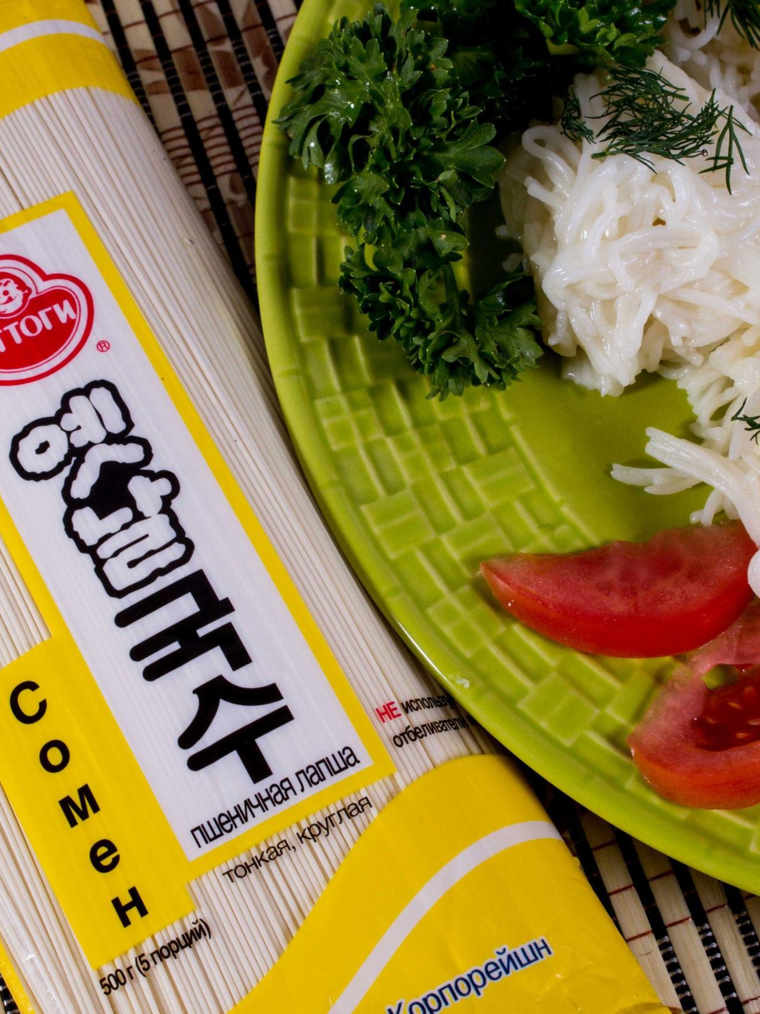 Приготовьте лапшу Ottogi Сомен тонкая круглая, следуя инструкции на упаковке.