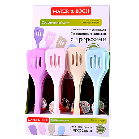 Лопатка MAYER&BOCH изготовлена из экологически чистого материала - силикона разных цветов. Выдерживает температурный диапазон от -60 до +260 градусов. Лопатка предназначена для переворачивания и перемешивания горячих блюд в процессе приготовления. Не боится пригорания продуктов, легко моется и хранится. Подходит для мытья в посудомоечной машине.