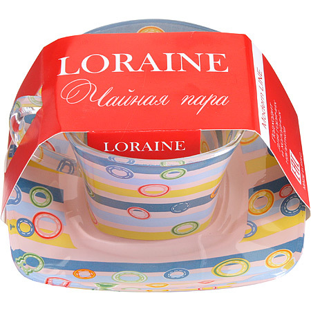 Чайная пара LORAINE на 1 персону, изготовленна из стекла, состоит из чашеки и блюдеца. Изделия набора украшены тонкой каймой и имеют красивый и нежный дизайн. Набор придется по вкусу и ценителям классики, и тем, кто предпочитает утонченность и изысканность. Он настроит на позитивный лад и подарит хорошее настроение с самого утра. Набор упакован в подарочную упаковку. Такой чайный набор станет прекрасным украшением стола, а процесс чаепития превратится в одно удовольствие! Это замечательный выбор для подарка родным и друзьям!