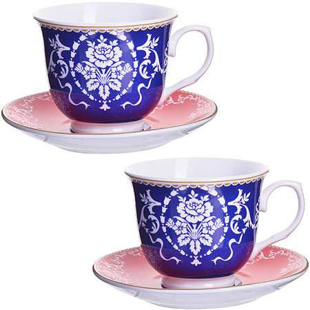 Чайный набор LORAINE выполнен из фарфора, состоит из 2-х чашек и 2-х блюдцев. Изделия оформлены ярким изображением. Изящный дизайн и красочность оформления придутся по вкусу и ценителям классики, и тем, кто предпочитает утонченность и изысканность. Чайный набор - идеальный подарок для вашего дома и для ваших друзей в праздники, юбилеи и торжества! Она также станет отличным корпоративным подарком и украшением любой кухни. Чайный набор упакована в подарочную коробку из плотного цветного картона.