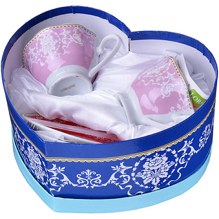 Чайный набор LORAINE выполнен из фарфора, состоит из 2-х чашек и 2-х блюдцев. Изделия оформлены ярким изображением. Изящный дизайн и красочность оформления придутся по вкусу и ценителям классики, и тем, кто предпочитает утонченность и изысканность. Чайный набор - идеальный подарок для вашего дома и для ваших друзей в праздники, юбилеи и торжества! Она также станет отличным корпоративным подарком и украшением любой кухни. Чайный набор упакована в подарочную коробку из плотного цветного картона.