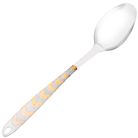 Ложка изготовлена из высококачественной нержавеющей стали. Ложка с длинной ручкой предназначена для перемешивания, в процессе готовки, супов и других жидких блюд, а также для удобного раскладывания готового блюда в тарелки. За счет своих компактных размеров изделие не займет много места на Вашей кухне, кроме того на рукоятке имеется отверстие для подвешивания. Половник станет достойным дополнением к Вашему кухонному инвентарю. Подходит для мытья в посудомоечной машине.