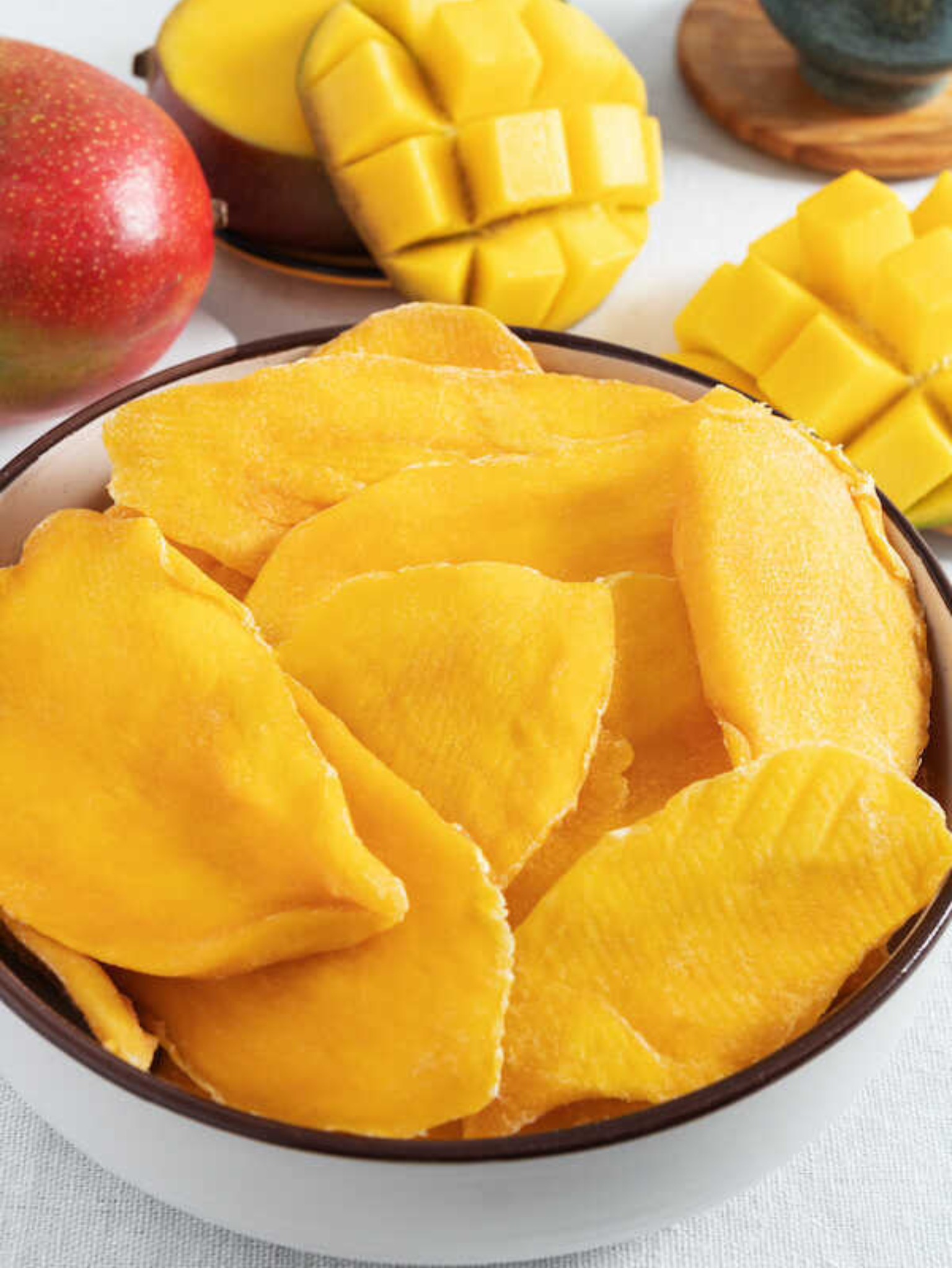 Подготовка манго: Положите сушеное манго в миску с теплой водой и дайте настояться 20-30 минут, чтобы оно стало немного мягче.