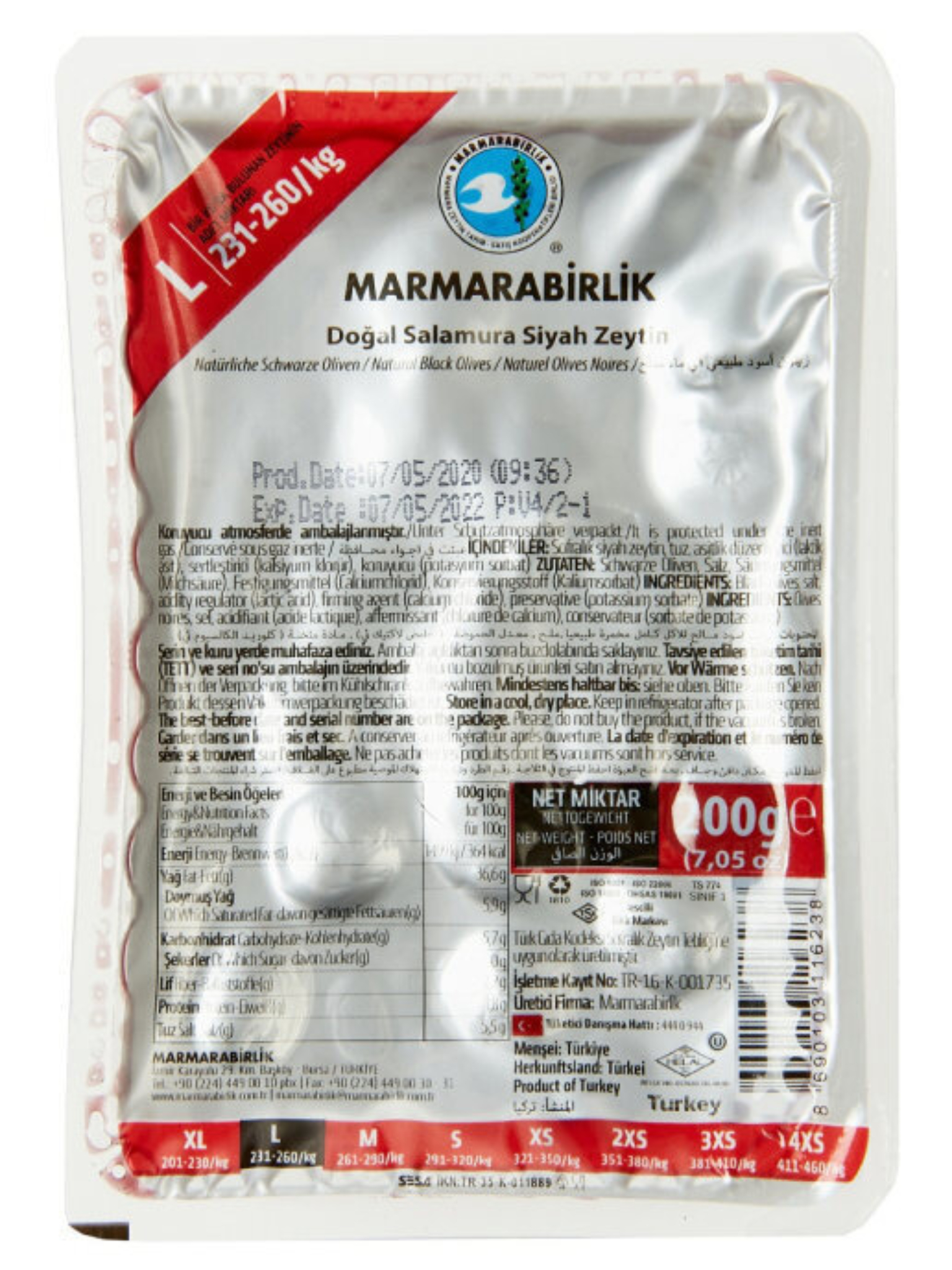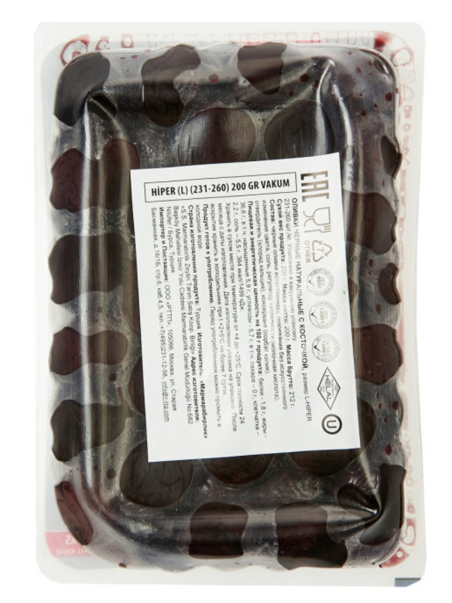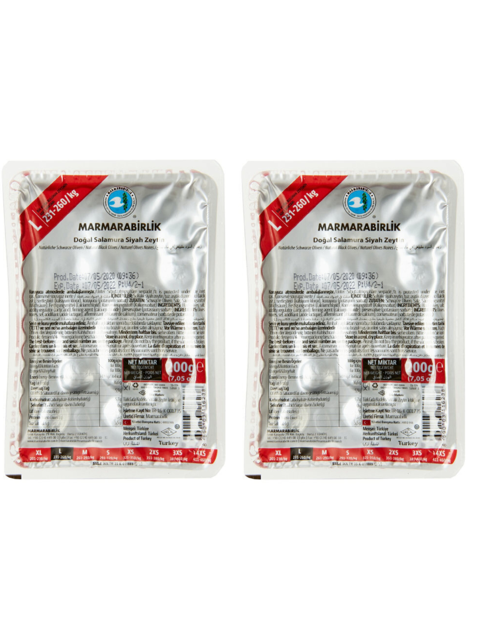 Маслины Marmarabirlik L черные с косточкой, 200 г, 2 шт