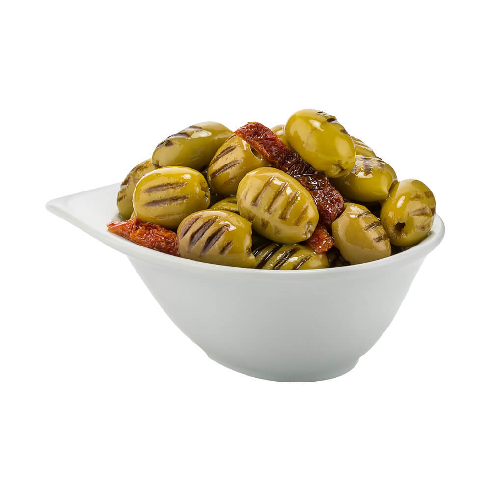 Оливки, приготовленные на гриле придают аромат после жарки на специальных барбекю, оставляют восхитительный вкус своим экстравагантным ароматом. Оливки, приготовленные на гриле из смеси зеленых оливок, сушеных помидоров, чеснока, растительного масла и специй, являются незаменимым продуктом для завтрака благодаря своему гармоничному вкусу. Оливковый салат, предлагаемый на рынке в альтернативной упаковке и весе, такой как стеклянные банки и вакуумные тарелки, обеспечивает удобство для потребителей.