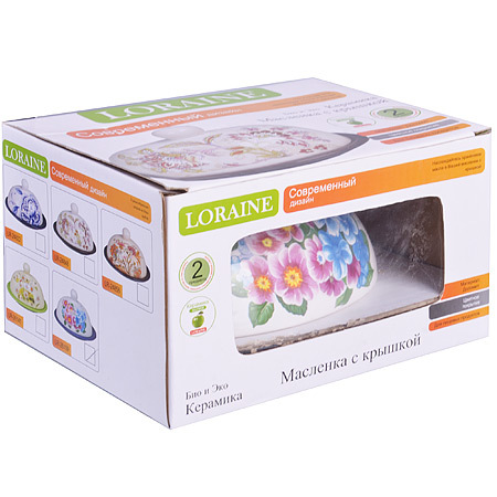 Масленка, выполненная из высококачественной доломитовой керамики и декорированная ярким рисунком, станет украшением интерьера вашей кухни. Масленка надежно закрывается керамической крышкой и прекрасно подойдет для хранения и сервировки масла, сыра, творога. Масленка рассчитана примерно на 200 г. масла. Подходит для мытья в посудомоечной машине.