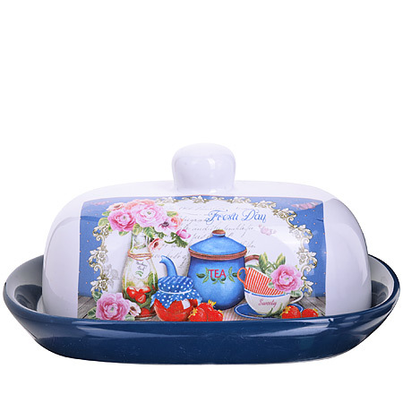 Масленка LORAINE, выполненная из качественной доломитовой керамики и декорированная ярким рисунком, станет украшением интерьера вашей кухни. Масленка надежно закрывается керамической крышкой и прекрасно подойдет для хранения и сервировки масла, сыра, творога. Масленка рассчитана примерно на 200 г. масла. Пригодна для использования в холодильнике, морозильнике, микроволновой печи. Подходит для мытья в посудомоечной машине.