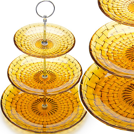 Элегантная конфетница MAYER&BOCH, выполненная из стекла, сочетает в себе изысканный дизайн с максимальной функциональностью. Конфетница состоит из 3-х ярусов разного размера и предназначена для красивой сервировки конфет, фруктов и десертов. Круглые ярусы конфетницы оформлены оригинальным орнаментом. Стойка-держатель конфетницы выполнена из стали. Конфетница украсит сервировку вашего стола и подчеркнет прекрасный вкус хозяина, а также станет отличным подарком.