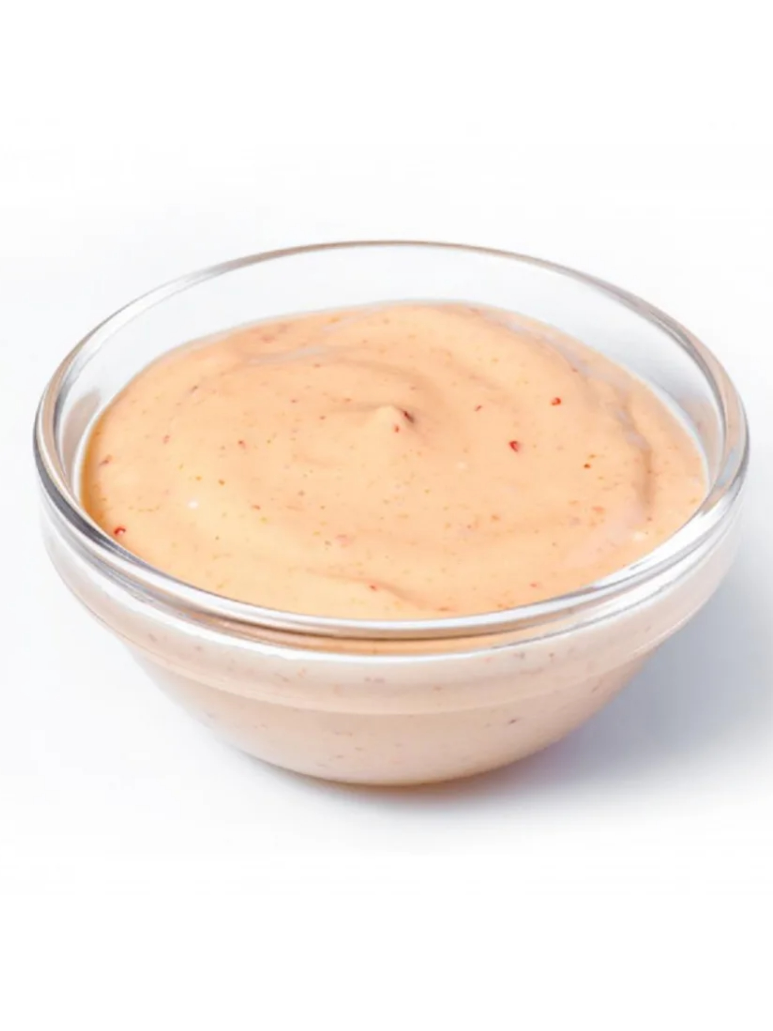 Пока картофель готовится, приготовьте соус: в небольшой миске смешайте майонез с паприкой Burcu и измельчённый чеснок. При желании можно добавить немного лимонного сока для свежести.