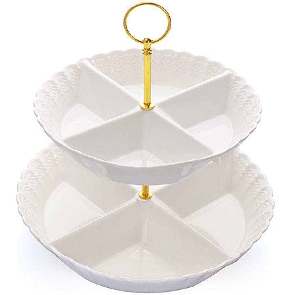 Элегантная менажница LORAINE, выполненная из керамики, сочетает в себе изысканный дизайн с максимальной функциональностью. Менажница состоит из 2-х ярусов разного размера и предназначена для красивой сервировки конфет, фруктов и десертов. Ярусы менажницы оформлены оригинальным орнаментом. Стойка-держатель конфетницы выполнена из стали. Менажница украсит сервировку вашего стола и подчеркнет прекрасный вкус хозяина, а также станет отличным подарком.