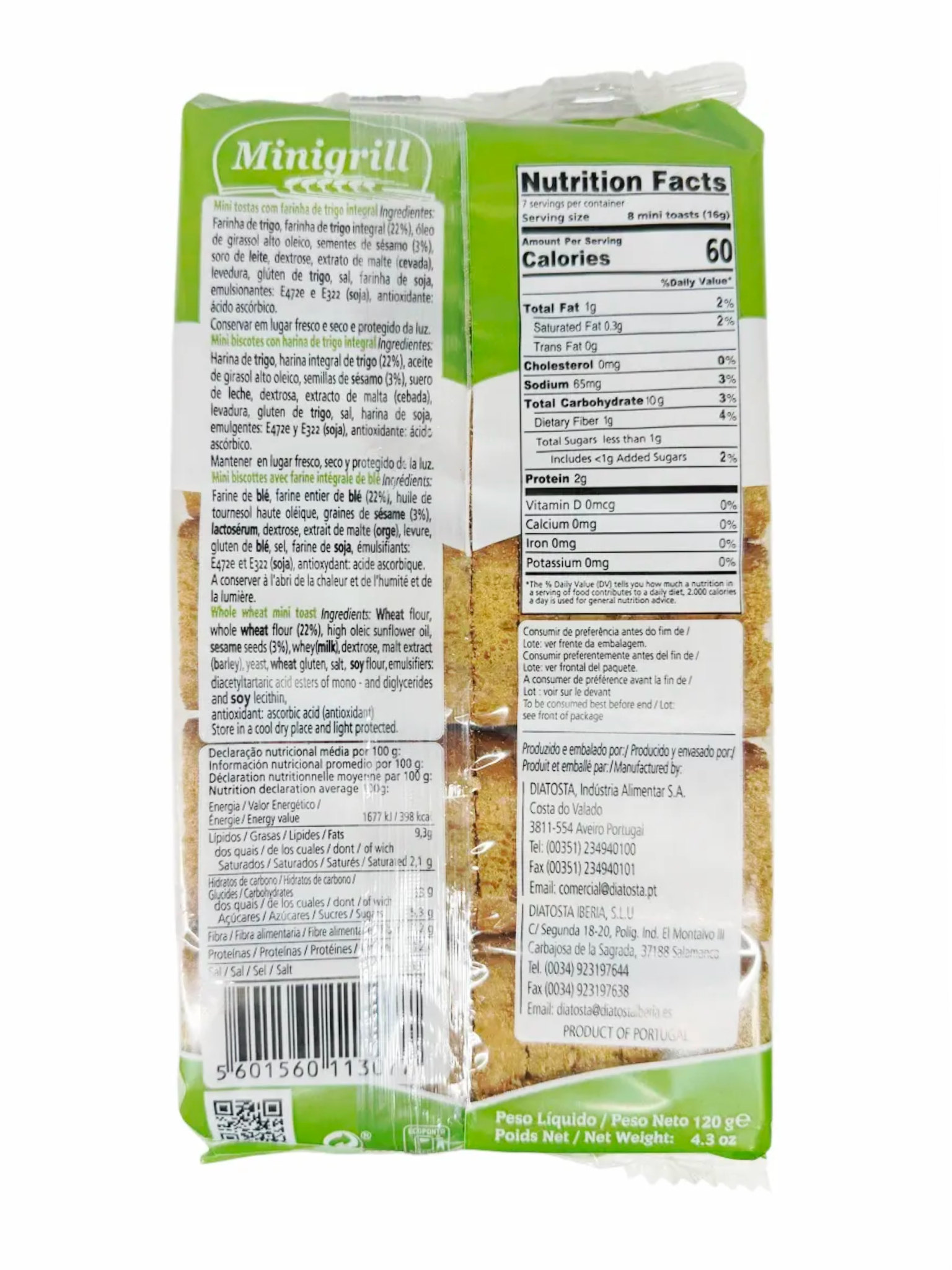Мини-тосты цельнозерновые Diatostaс кунжутом 120 г