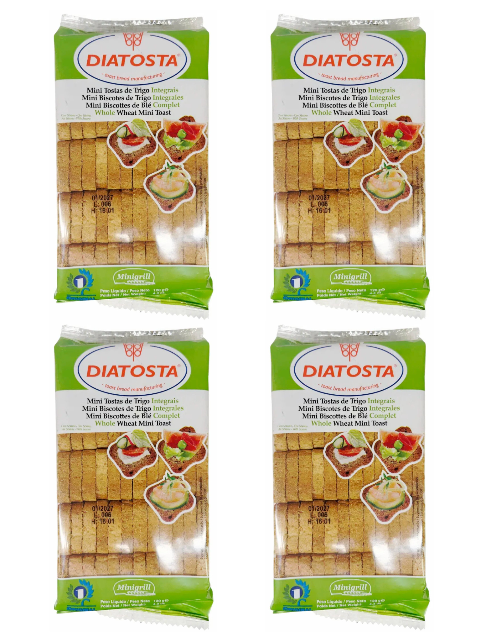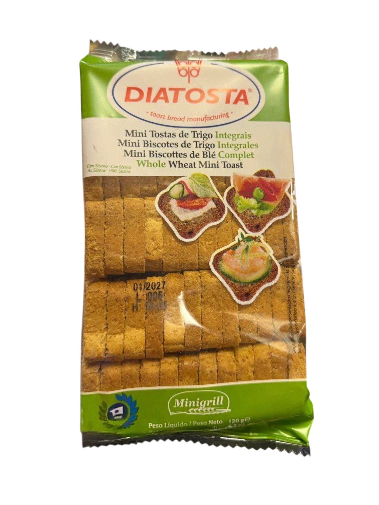 Мини-тосты цельнозерновые Diatostaс кунжутом 120 г x 4 шт