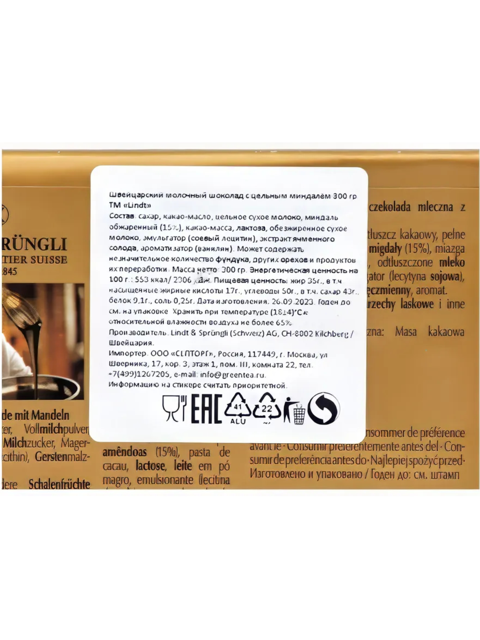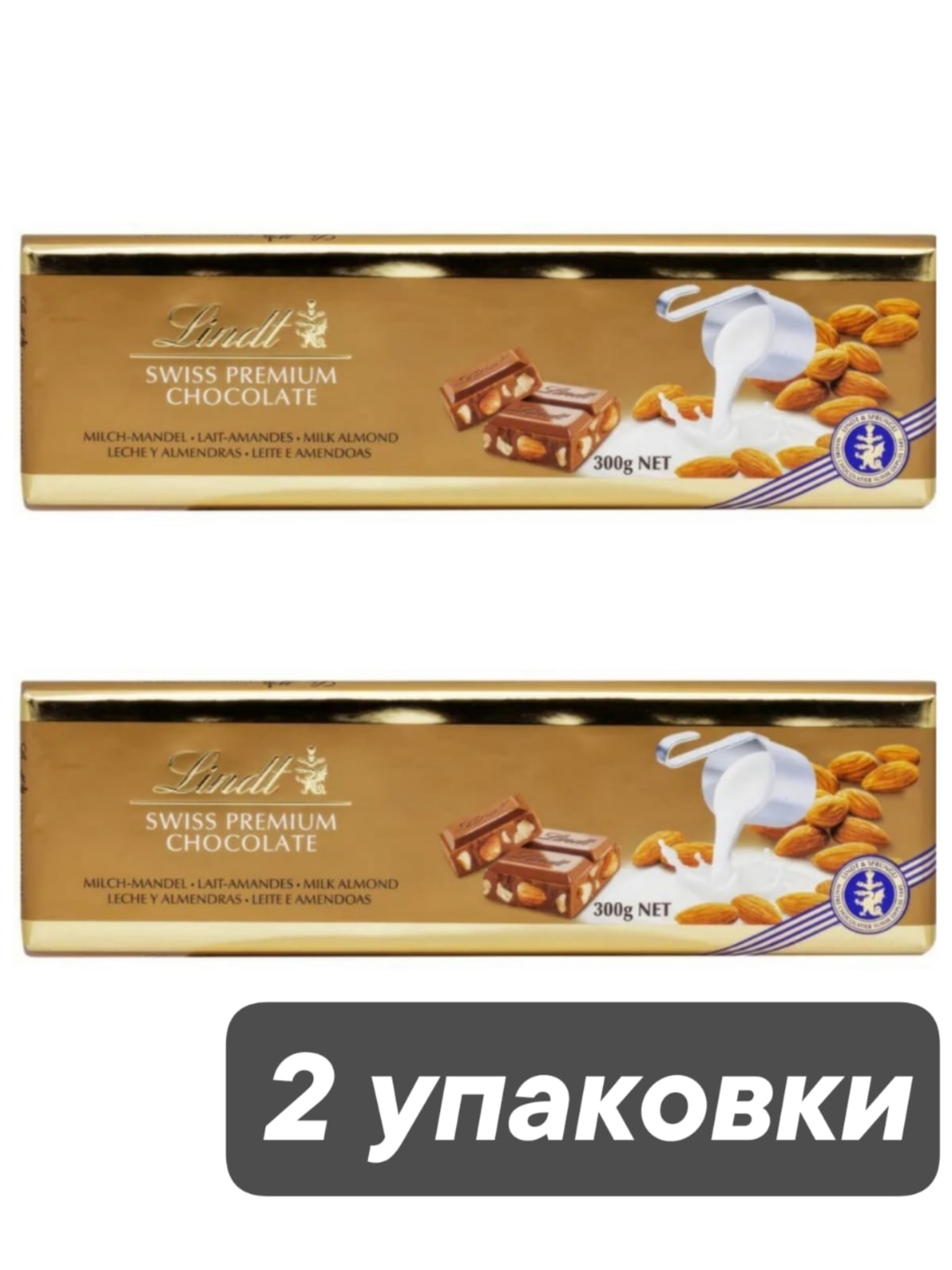 Молочный шоколад Lindt с миндалем 300 г x 2 шт