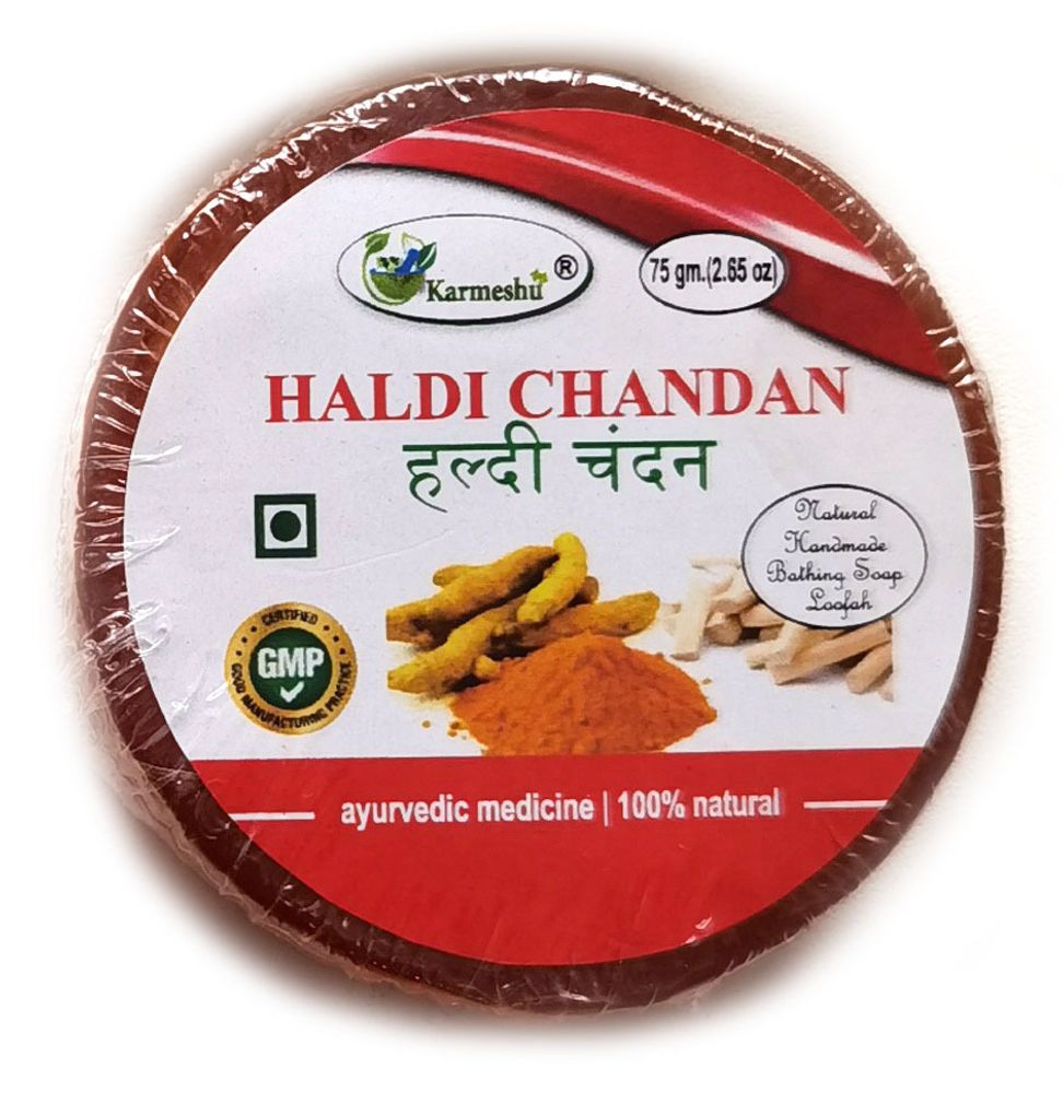 Мыло Karmeshu Куркума сандал ручной работы с натуральной мочалкой 75 гр