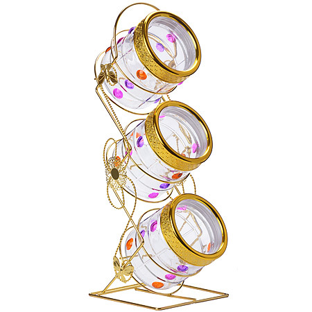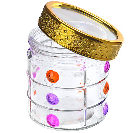 Набор MAYER&BOCH из 3-х банок для сыпучих продуктов выполнен из высококачественного стекла и декорирован рисунком в форме розово-красных кругов. Банки располагаются на изящной ажурной металлической подставке. Набор предназначен для хранения различных сыпучих продуктов: сахара, кофе, чая, специй и т.п. Пластиковые крышки с золотым ободком и прозрачным верхом плотно закрываются и препятствуют проникновению влаги и посторонних запахов внутрь. Необычный и оригинально оформленный набор банок послужит прекрасным подарком и украсит любую кухню. Изделия не впитывают запахи и легко моются.