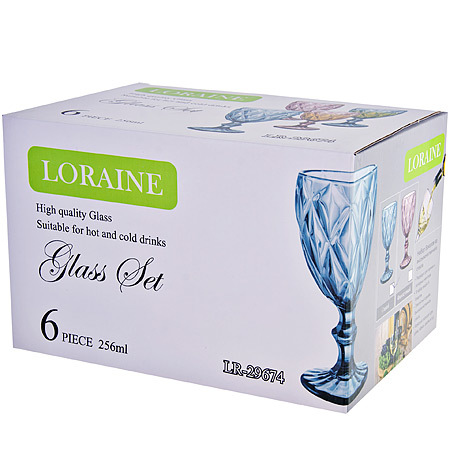 Набор бокалов LORAINE выполнен из прочного высококачественного стекла. Набор состоит из 6-ти бокалов объемом в 256 мл. Бокалы предназначены для подачи лимонада, сока, воды и других напитков. Благодаря рельефной поверхности стакан очень удобно держать в руке. Такой набор послужит отличным подарком к празднику, а также добавит элегантности и уюта любому праздничному столу! Посуда не впитывает запахи и легко моется. Подходит для мытья в посудомоечной машине.