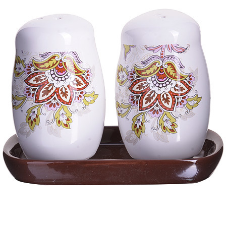 Набор для специй LORAINE состоит из солонки и перечницы на подставке. Предметы набора выполнены из прочной доломитовой керамики высокого качества и оформлены стильным рисунком. Дизайн, эстетичность и функциональность набора позволят ему стать достойным дополнением к кухонному инвентарю. Подходит для мытья в посудомоечной машине.