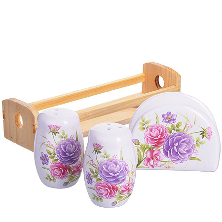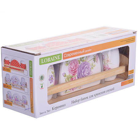 Набор для специй LORAINE состоит из солонки, перечницы, салфетницы и деревянной подставки. Предметы набора выполнены из прочной доломитовой БИО и ЭКО керамики. Отверстия, в которые засыпаются специи, закрыты силиконовыми пробками. Благодаря своим небольшим размерам набор не займет много места на Вашей кухне. Дизайн, эстетичность и функциональность набора позволят ему стать достойным дополнением к кухонному инвентарю и украсить сервировку Вашего стола.