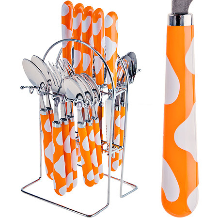 Набор столовых приборов MAYER&BOCH на 6 персон выполнен из прочной нержавеющей стали и цветного пластика. В набор входит 25 предметов: 6 столовых ножей, 6 столовых ложек, 6 столовых вилок и 6 чайных ложек и металлическая подставка. Приборы имеют удобные эргономичные пластиковые ручки. Прекрасное сочетание свежего дизайна и удобство использования предметов набора придется по душе каждому. Предметы набора расположены на подставке с секциями для каждого вида приборов. Набор столовых приборов подойдет для сервировки стола, как дома, так и на даче и всегда будет важной частью трапезы, а также станет замечательным подарком. Подходит для мытья в посудомоечной машине.