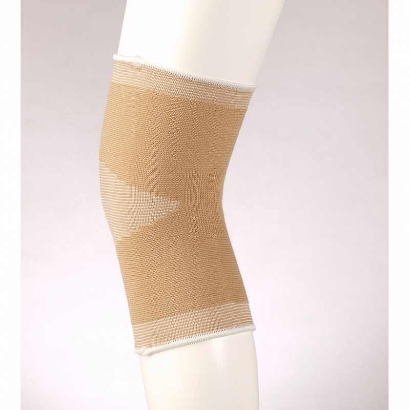 Бандаж коленного сустава F 1102 выполнен из медицинского эластика, не имеет дополнительных ребер жесткости и обладает легкой степенью фиксации. В области колена вязка материала более разряженная.