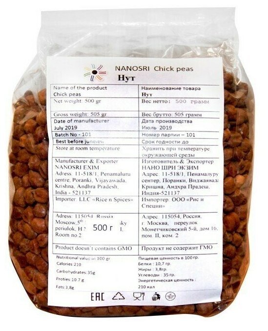 - 1 чашка Nano Sri Brown Chick peas (нут коричневый чана кала)