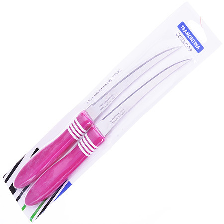 Нож Tramontina изготовлен из высококачественной нержавеющей стали, обеспечивающей высокие режущие свойства кромки клинка. Волнистое острие лезвия ножа не потребует постоянной заточки и даст возможность быстро и качественно порезать продукты, даже такие, как помидоры - с мягкой сердцевиной и твердой кожицей. Поверхность клинка легко моется, не впитывает и не «передает» запахи пищи при нарезке продуктов.Тщательно разработанный дизайн рукоятки и ее качество, позволяют ножу удобно располагаться в руке. Нож изготовлен из экологически чистых материалов, легок и прост в эксплуатации и уходе. Подходит для мытья в посудомоечной машине. (Ножи упакованы по 2 шт. на блистере).