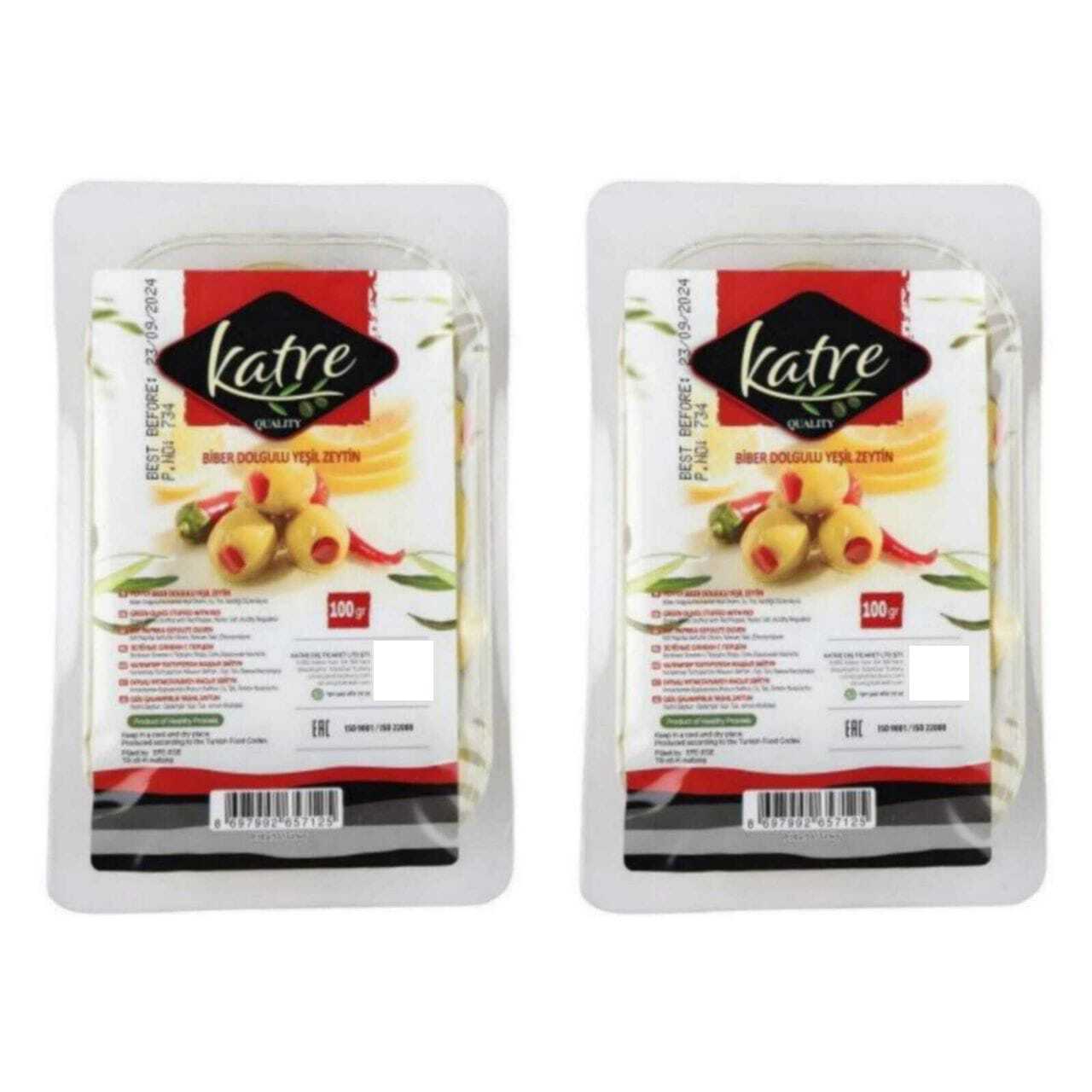 Оливки зеленые Katre Biber фаршированные перцем 100 г