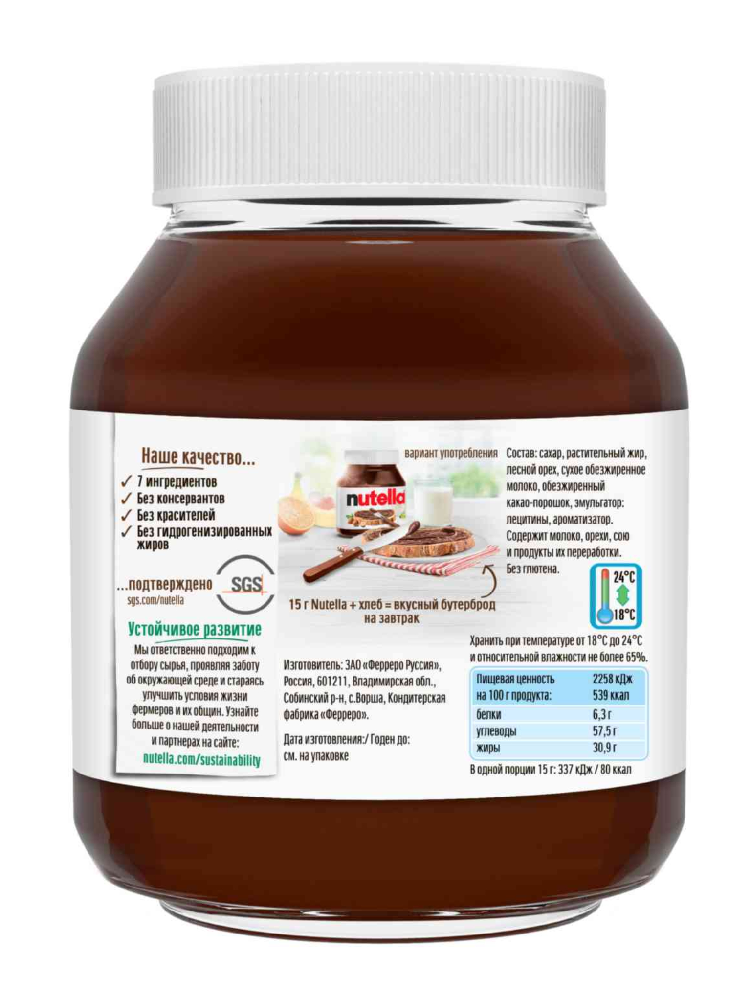 180–200 г Ореховой пасты Nutella с добавлением какао