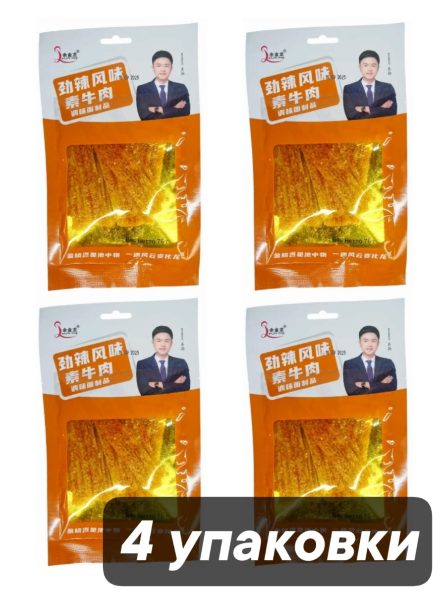 Острые мучные полоски Yu Jin Long Со вкусом говядины 76 г x 4 шт