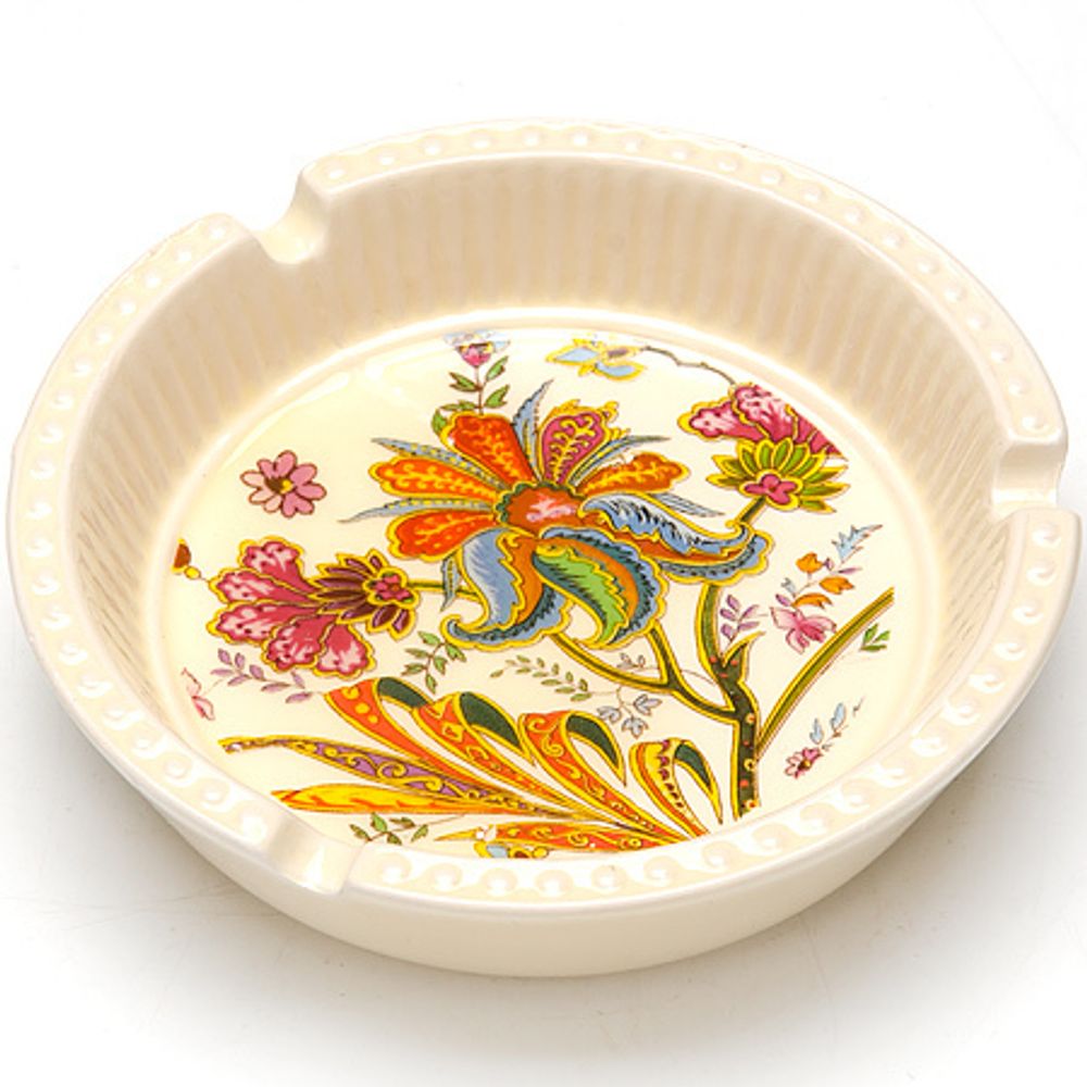 Изящная круглая пепельница LORAINE выполнена из доломитовой керамики и украшена цветочным узором. Изделие отличается термической прочностью. Подходит для мытья в посудомоечной машине.