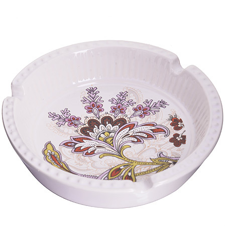 Изящная круглая пепельница LORAINE выполнена из доломитовой керамики и украшена цветочным узором. Изделие отличается термической прочностью. Подходит для мытья в посудомоечной машине.