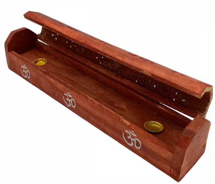 Подставка-пенал для благовоний из дерева похожа на искусно украшенную шкатулку. Процесс изготовления требует восточного терпения и особой кропотливости, поэтому такой предмет – это шедевр ремесленного искусства. Подставка-пенал предназначена для возжигания ароматических палочек на бамбуковой основе и ароматических конусов. Аромапалочки нужно поджечь, затем потушить пламя и тлеющую палочку вставить горизонтально, для этого имеются два отверстия – можно смешать разные запахи. Внутри подставки можно также возжигать аромаконусы. Затем тлеющие благовония следует накрыть резной крышкой подставки. Из прорезей заструится ароматный дым, что будет выглядеть очень эффектно. Ручная работа превращает подставку-пенал в неповторимый этно аксессуар, который не только украсит гостиную или спальню, но и позволит интересно оформить «уголок» для занятий йогой и медитацией.
