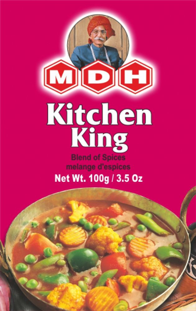 Королевская приправа Kitchen King от MDH - это многокомпонентная смесь специй, которая обладает ярким и насыщенным вкусом. Она может использоваться в приготовлении различных блюд, например, карри, жареных овощей, мяса и рыбы.