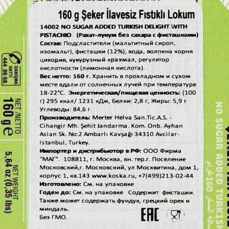 Рахат-лукум Koska с Фисташками без сахара 160 г