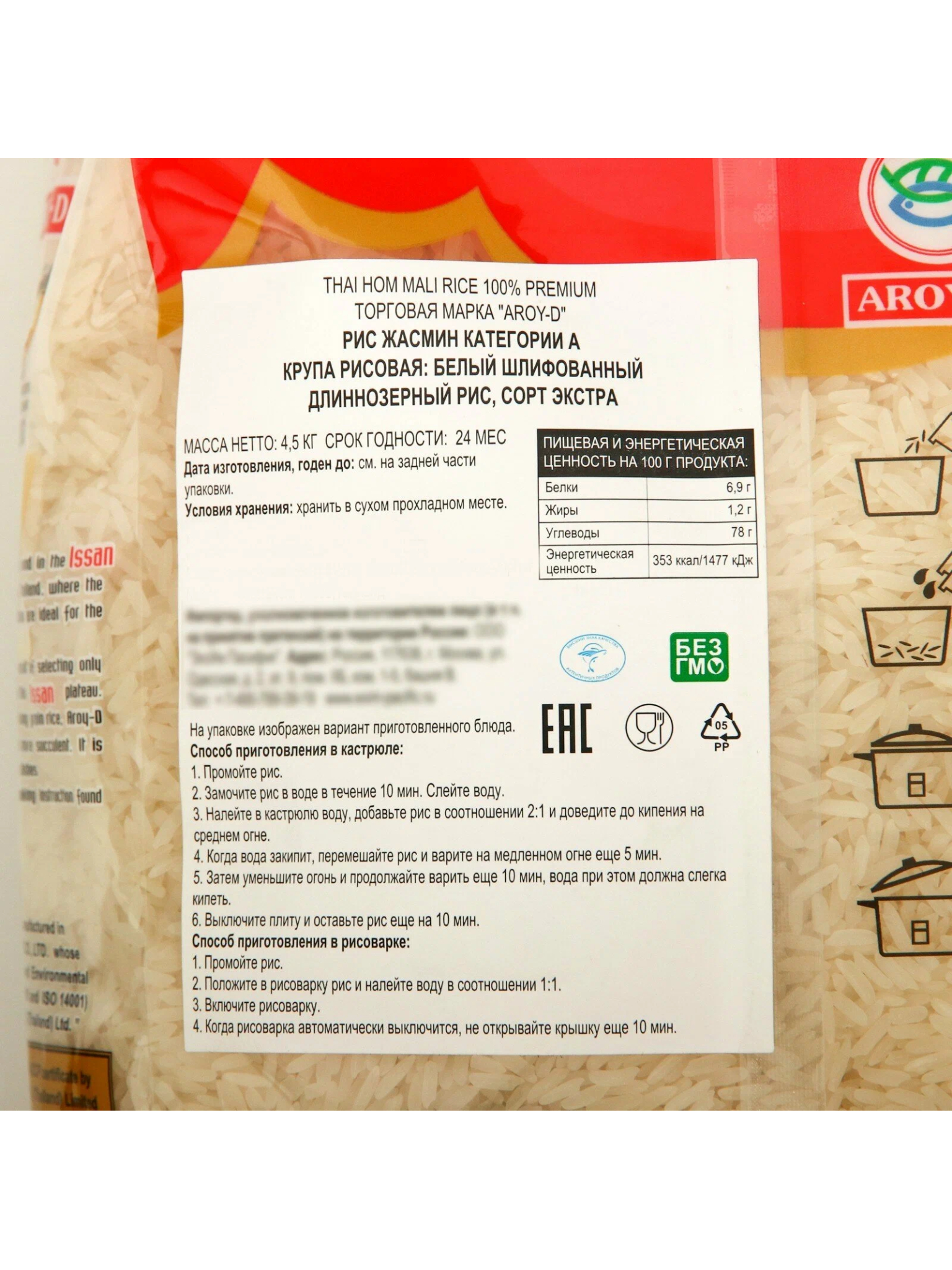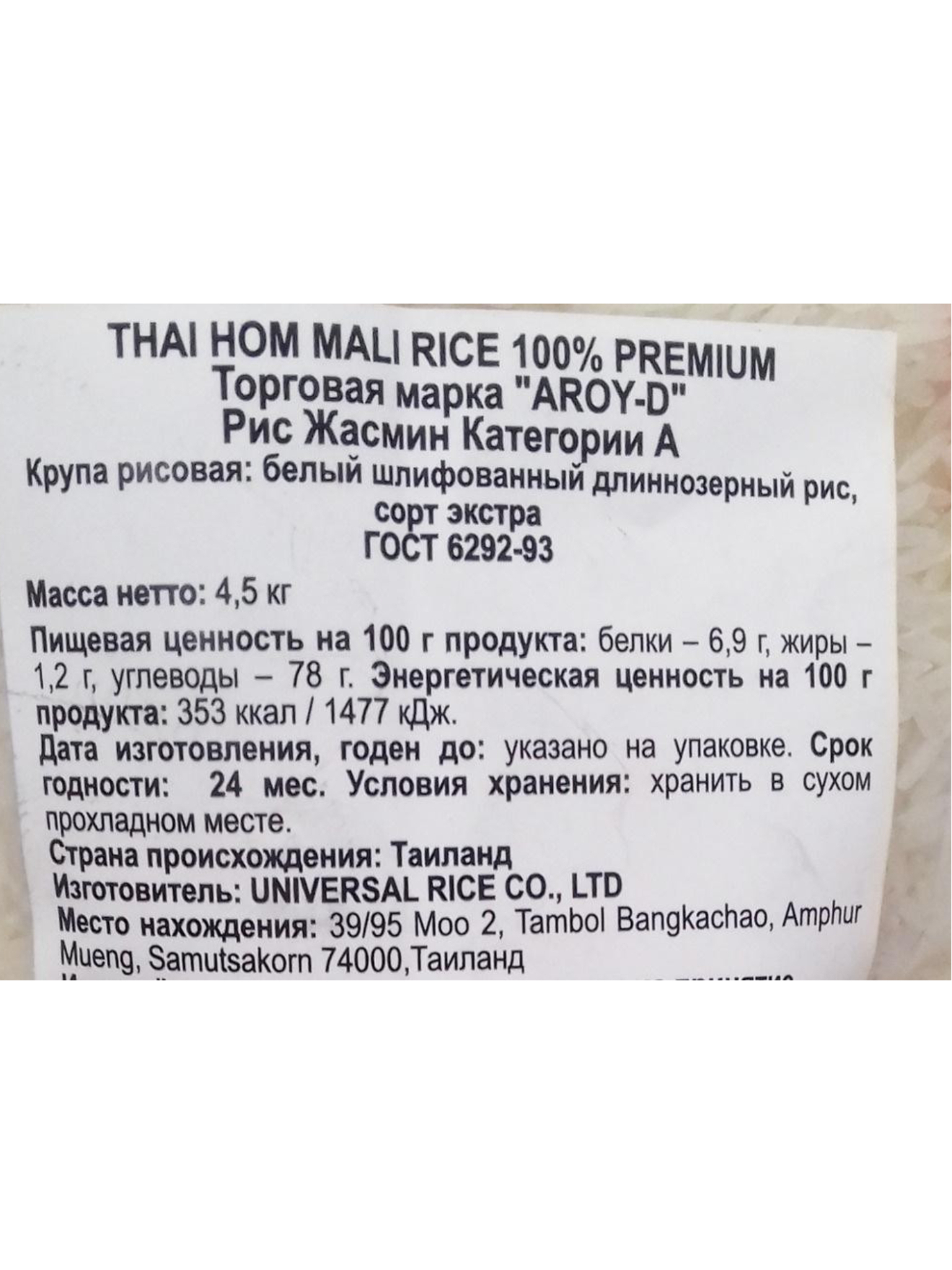 - 2 чашки (около 400 г) риса Aroy-D жасмин белый