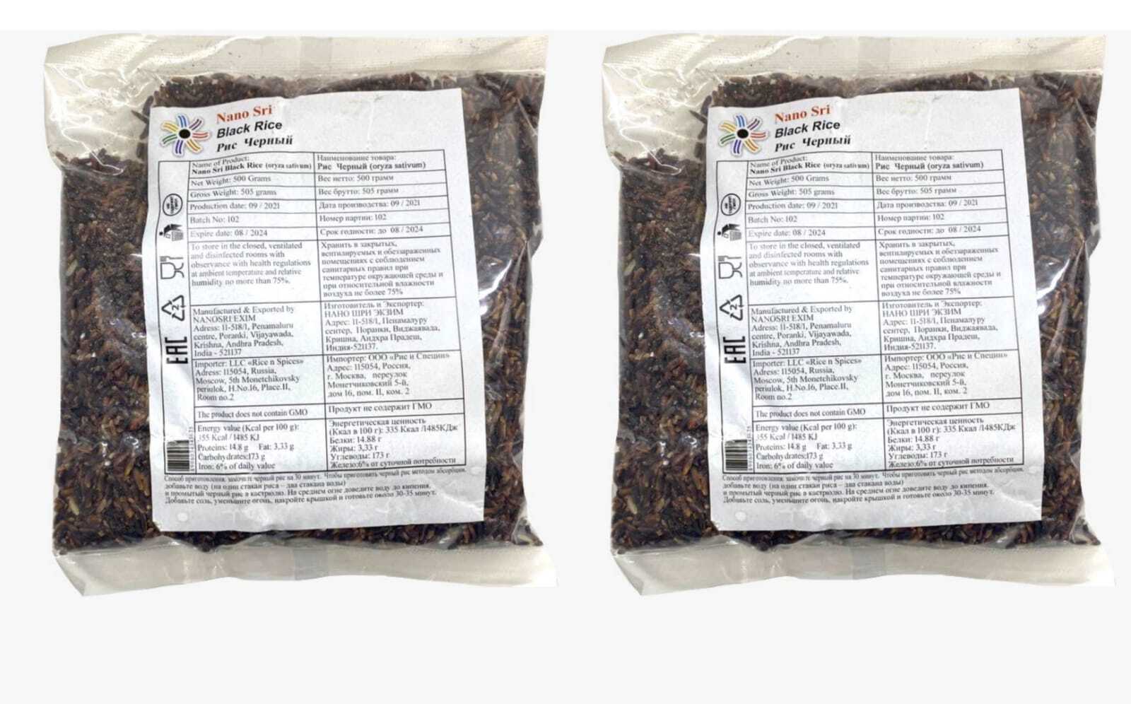 Рис Nano Sri Oryza Sativum черный, 500 г, 2 шт