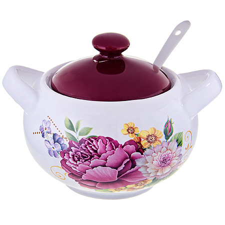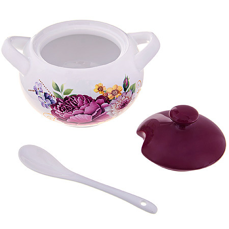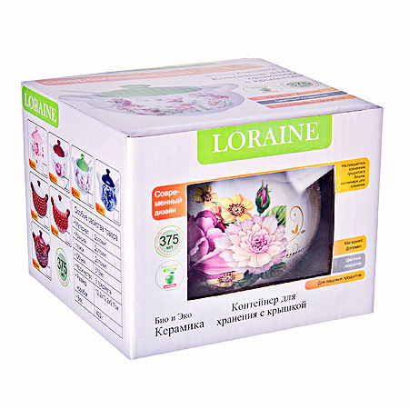 Сахарница LORAINE изготовлена из прочной керамики высокого качества c цветным рисунком. Сахарница закрывается удобной крышкой. В комплекте идет небольшая керамическая ложечка. Такая сахарница понравится любителям яркого оригинального дизайна и станет неотъемлемым атрибутом чаепития. Предметы набора можно мыть в посудомоечной машине. Не применять абразивные моющие средства.