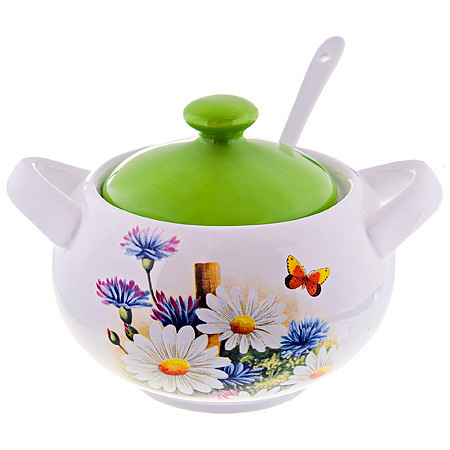 Сахарница LORAINE изготовлена из прочной керамики высокого качества c цветным рисунком. Сахарница закрывается удобной крышкой. В комплекте идет небольшая керамическая ложечка. Такая сахарница понравится любителям яркого оригинального дизайна и станет неотъемлемым атрибутом чаепития. Предметы набора можно мыть в посудомоечной машине. Не применять абразивные моющие средства.