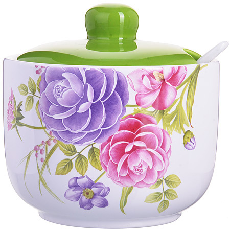 Сахарница LORAINE изготовлена из прочной керамики высокого качества c цветным рисунком. Сахарница закрывается удобной крышкой. В комплекте идет небольшая керамическая ложечка. Такая сахарница понравится любителям яркого оригинального дизайна и станет неотъемлемым атрибутом чаепития. Предметы набора можно мыть в посудомоечной машине. Не применять абразивные моющие средства.