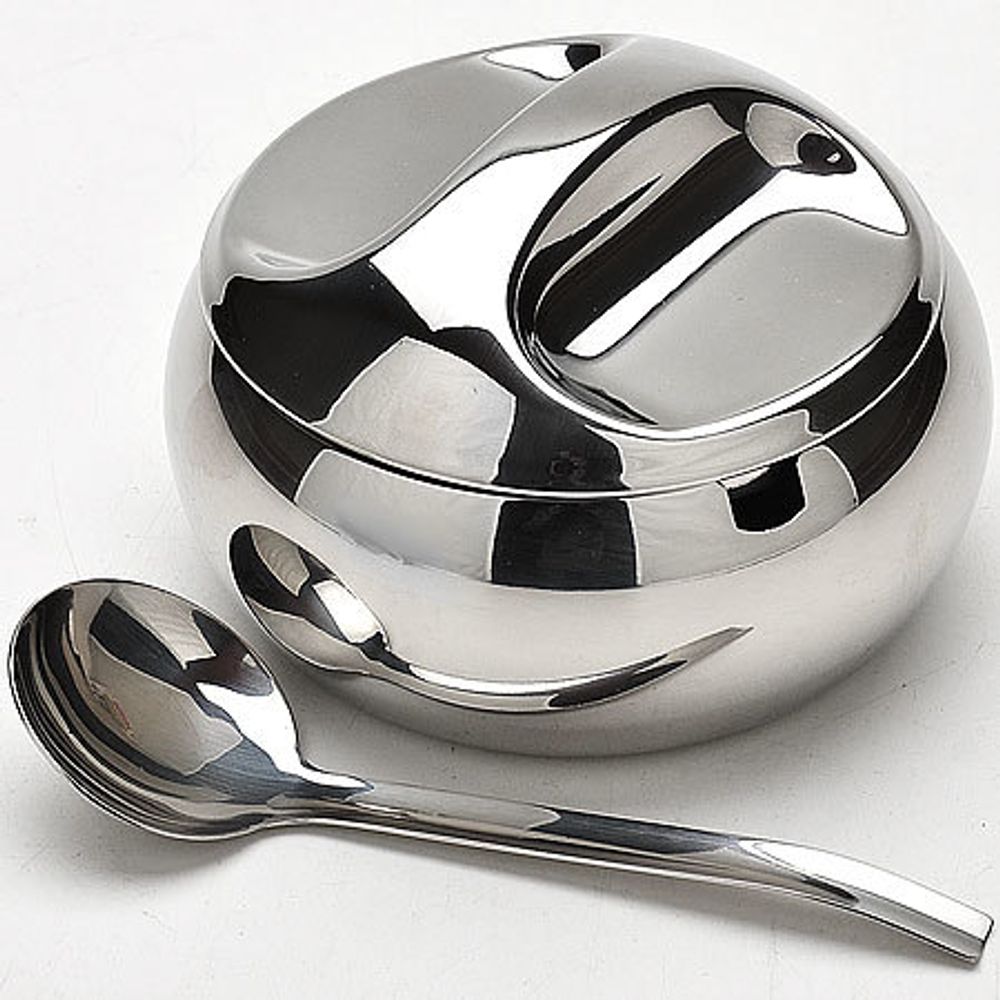 Оригинальная сахарница MAYER&BOCH выполнена из высококачественного стекла и нержавеющей стали. Данная модель отличается современным дизайном и практичной конструкцией. Корпус сахарницы выполнен из качественной нержавеющей стали, обеспечивающей долговечность изделия. Прозрачная стеклянная крышка защитит сахар от загрязнений. Такая сахарница отлично впишется в интерьер современной кухни, а сахар, хранящийся в сахарнице, надолго останется свежим, не отсыреет и не впитает посторонние запахи. В комплекте с сахарницей идет маленькая ложка из нержавеющей стали. Сахарница MAYER&BOCH станет прекрасным дополнением к набору кухонных аксессуаров, а также внесет яркий акцент в сервировку стола. Подходит для мытья в посудомоечной машине.