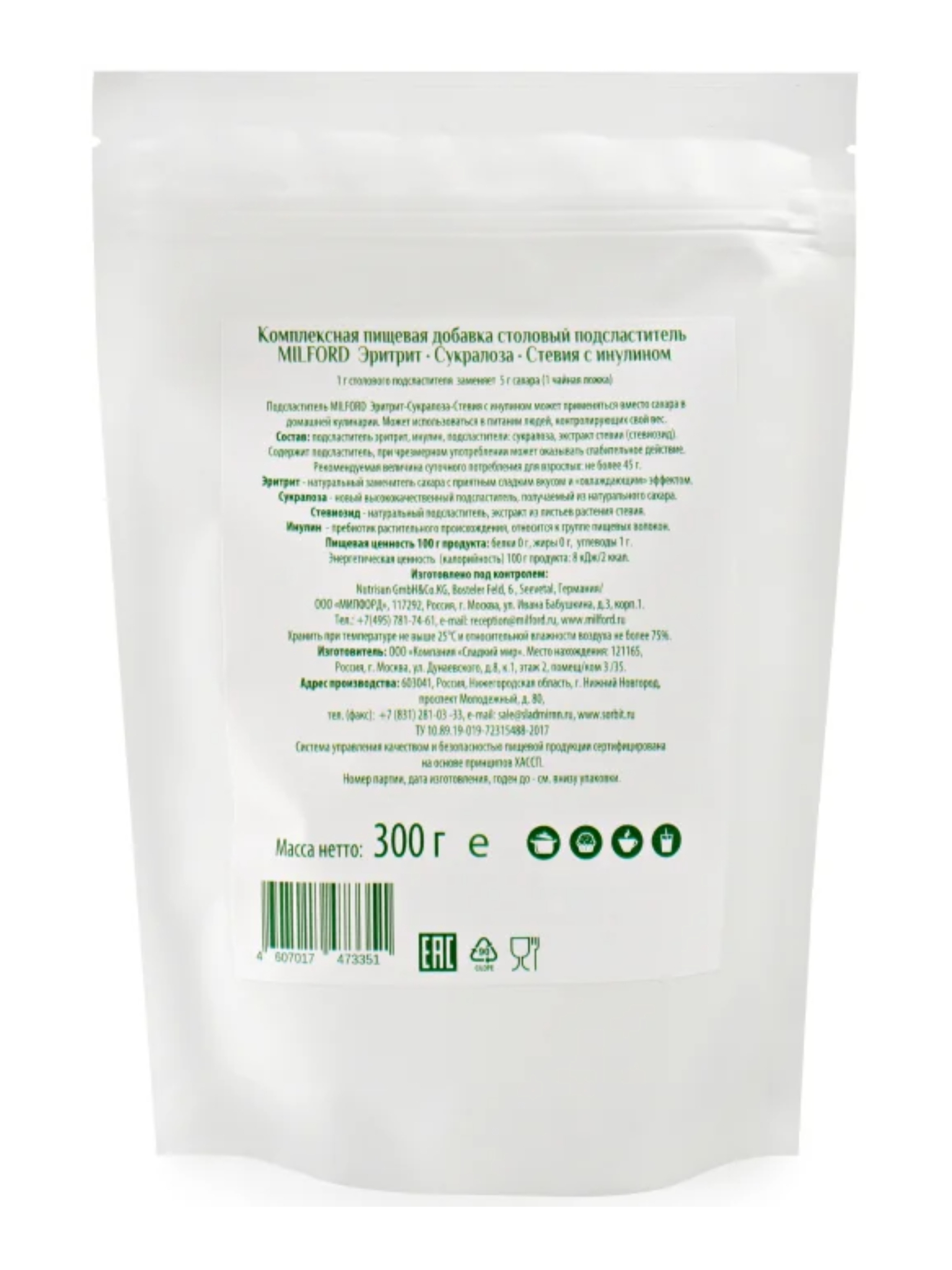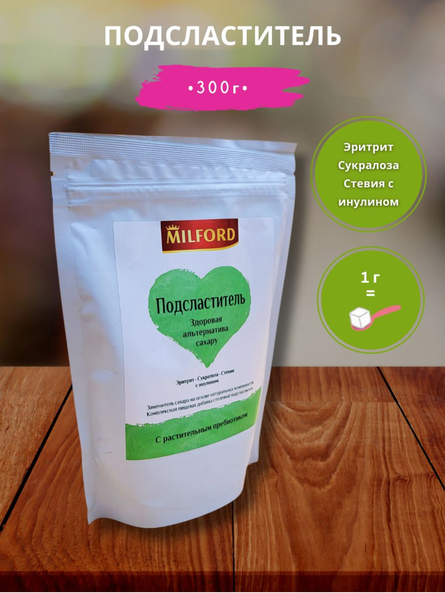 Сахарозаменитель MILFORD Эритрит-Сукралоза-Стевия c инулином 300 г