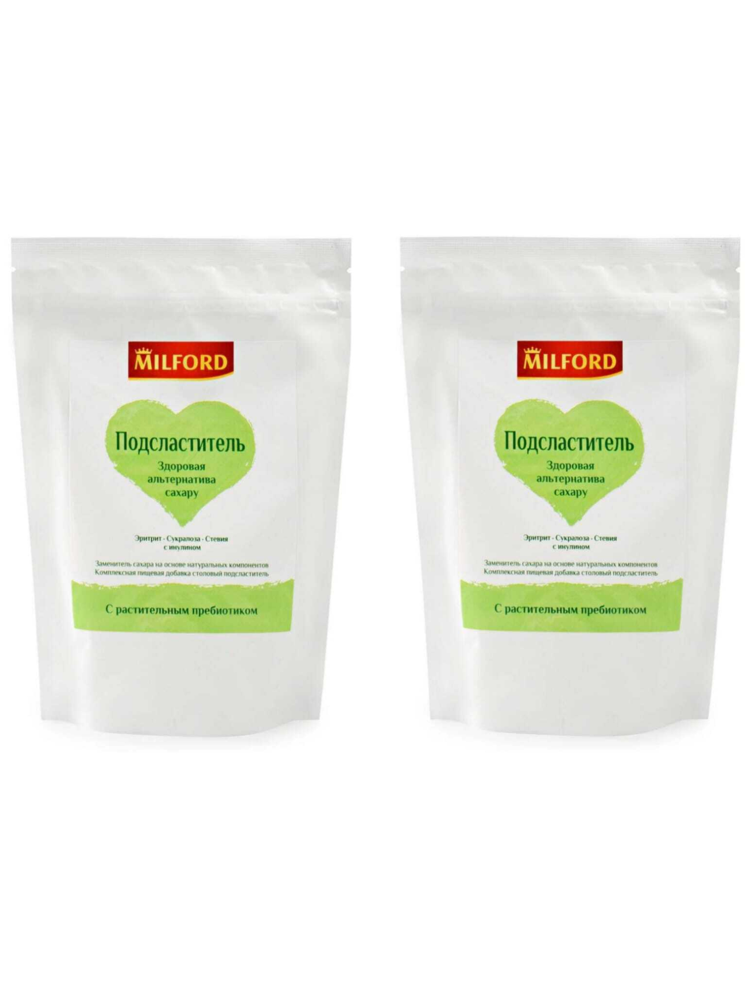 Сахарозаменитель MILFORD Эритрит-Сукралоза-Стевия c инулином 300 г, 2 шт