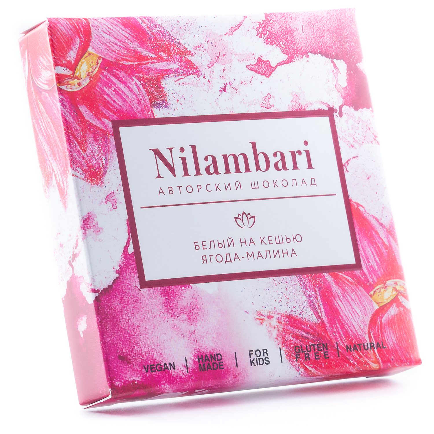 Шоколад Nilambari Ягода-малина белый на кешью, 65 г