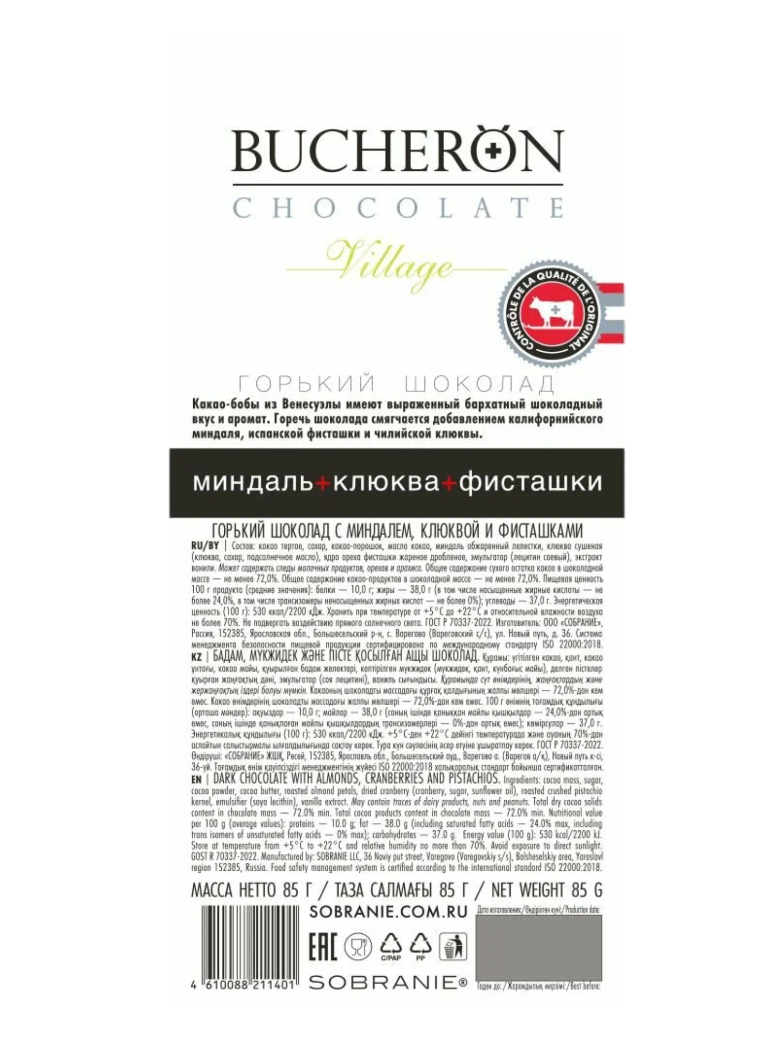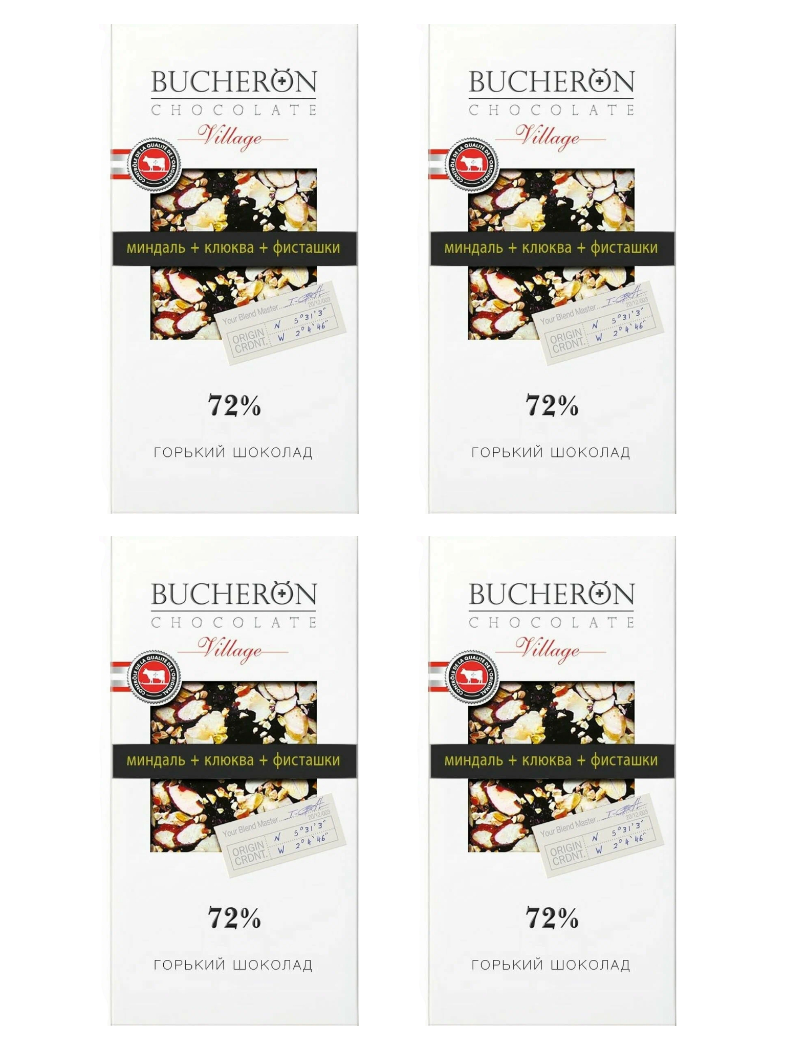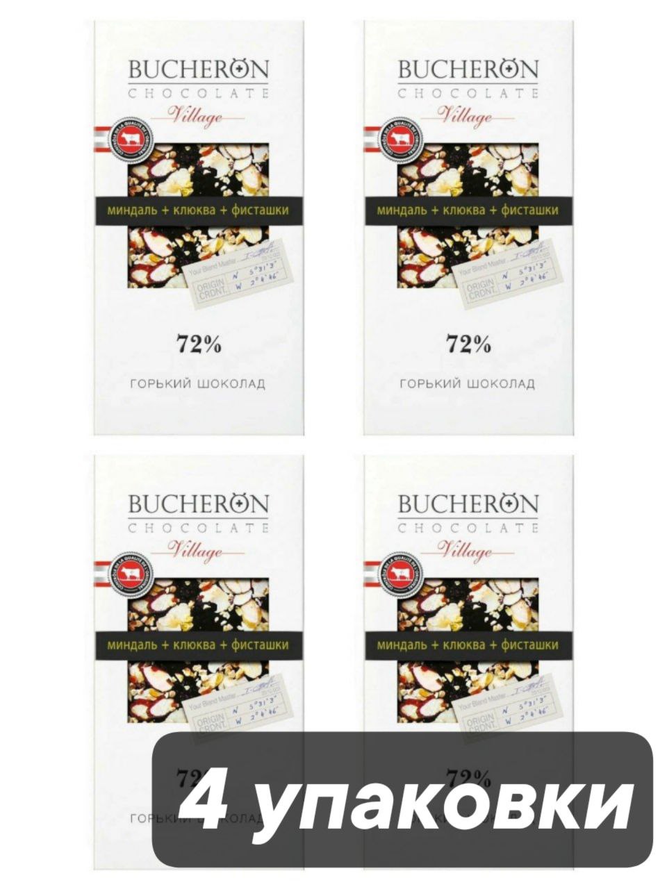 Шоколад горький Bucheron Миндаль Клюква Фисташки 85 г x 4 шт